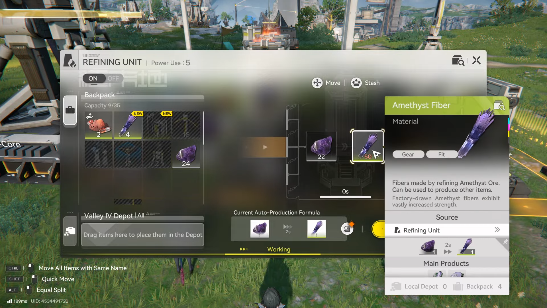 | Craft chain | Amethyst Ore → Amethyst Fiber (Refining Unit) → Amethyst Parts (Fitting Unit). |