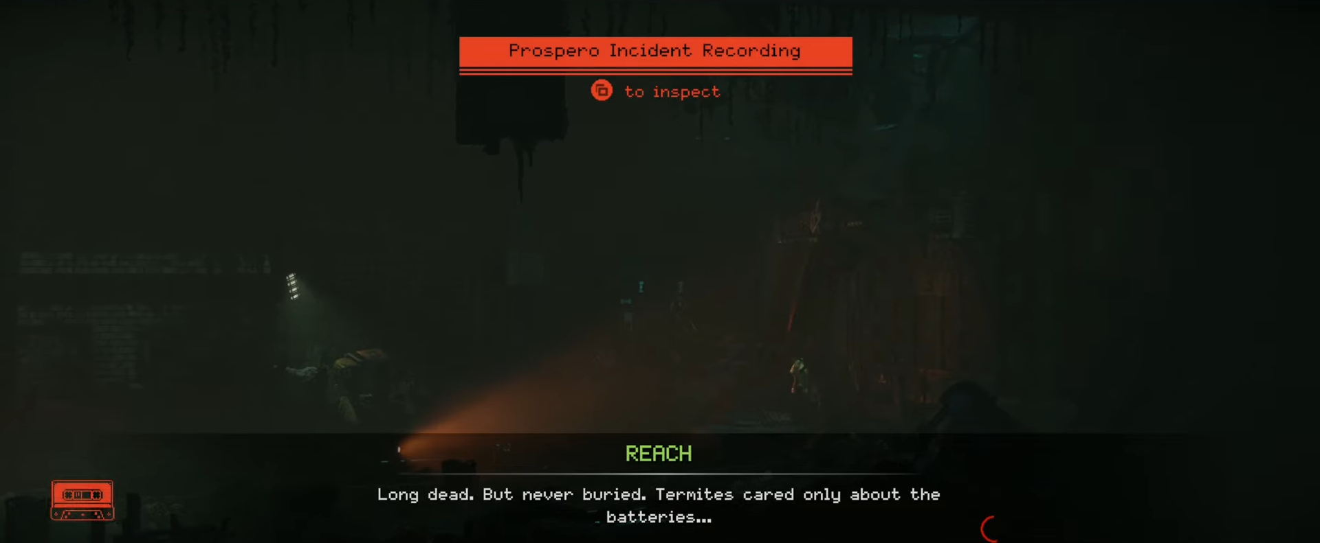 Found toward the end of a tunnel path after progressing deeper into Prospero.