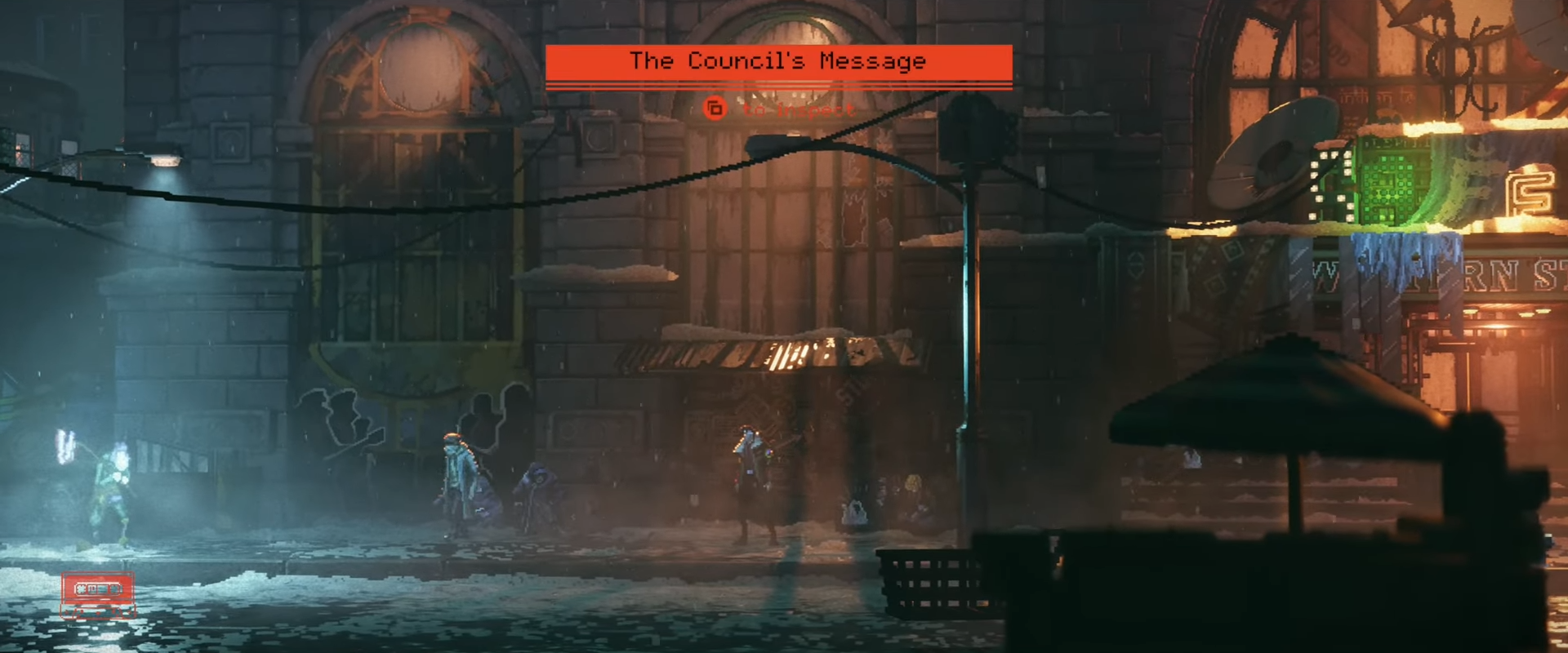 At the chapter start, scan the note directly ahead on the street.