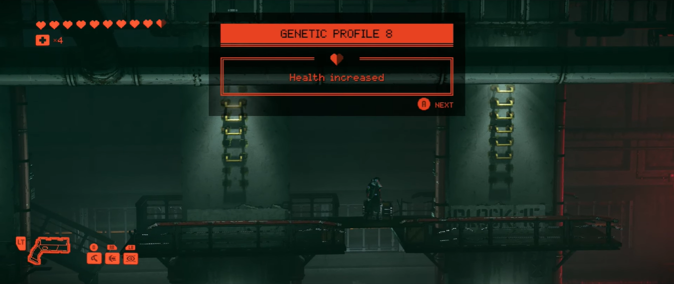 After passing through two steam pipes, drop down instead of continuing left to collect this health upgrade. Please note that Genetic Profile #9 is found in chapter 7.