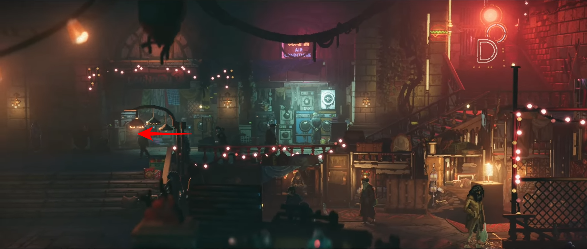 • Interact with a wall map outside the gate to advance.