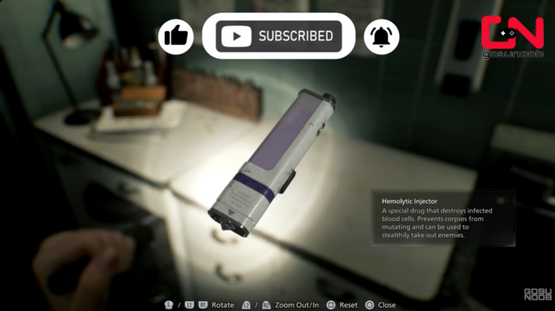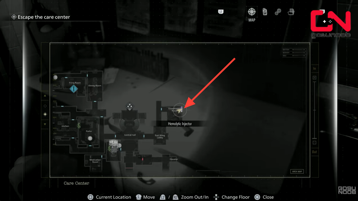 Search the Care Center to find the Hemolytic Injector. Once acquired, it becomes a powerful stealth tool in your inventory.