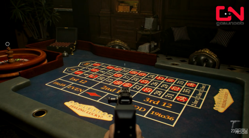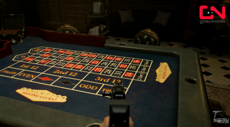 Stand near the roulette table and equip any firearm with sufficient precision. Aim carefully at one of the three confirmed numbers: 7, 15, or 29. Fire a shot directly at the number.