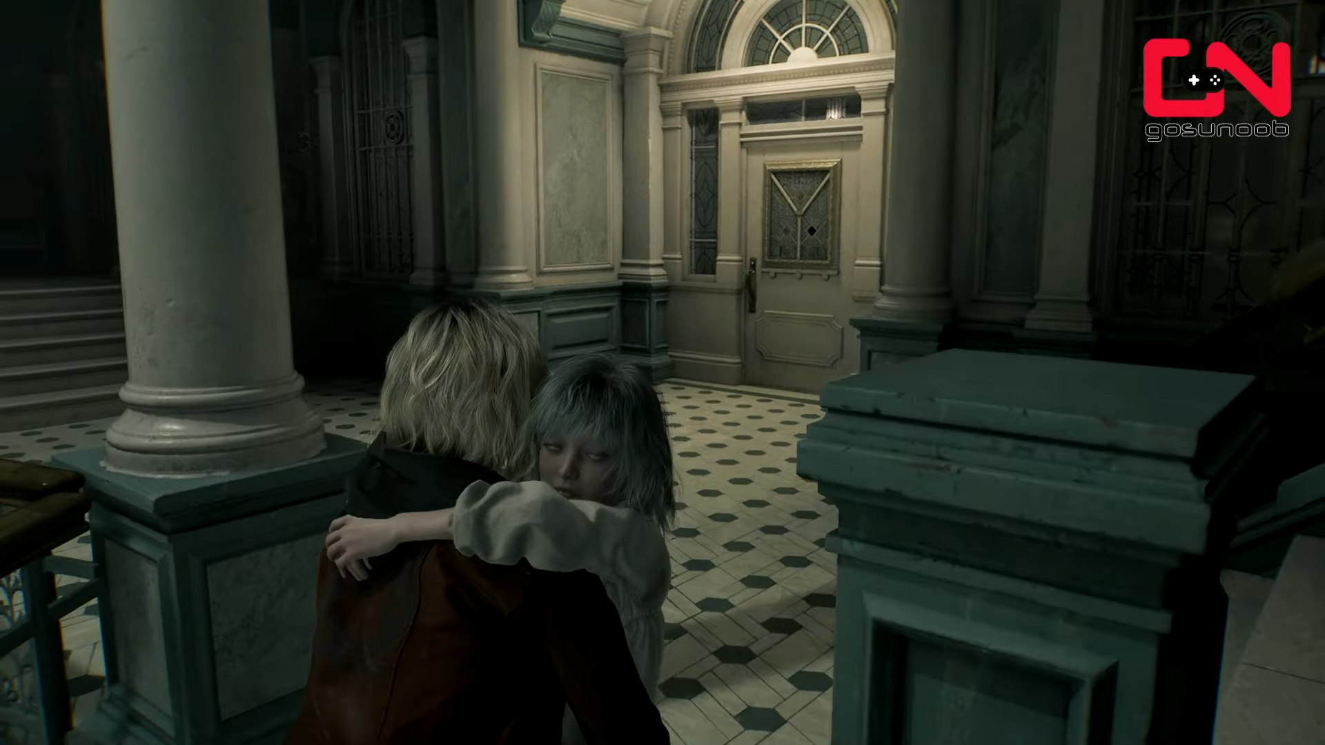 Pick Emily up and move slowly through the zombie-filled Isolation Ward to the Security Manager’s Office.
