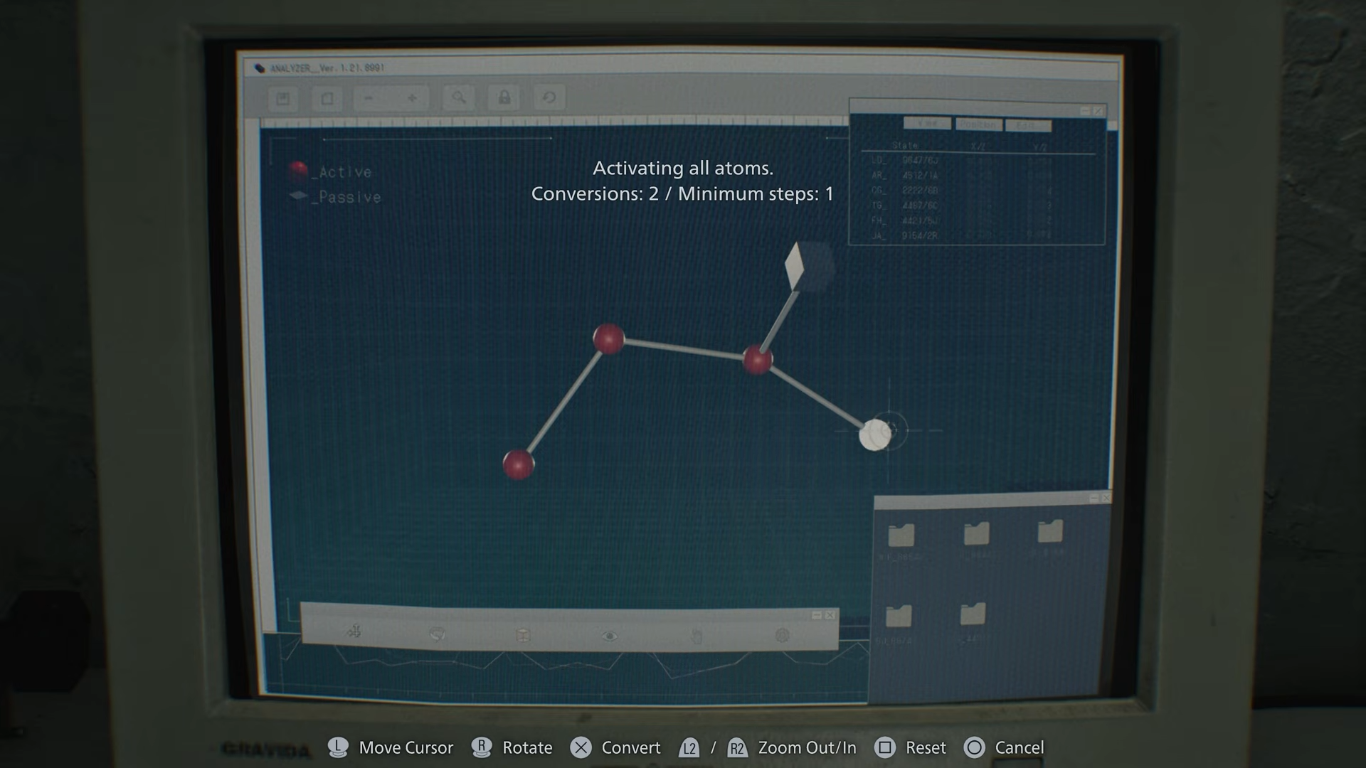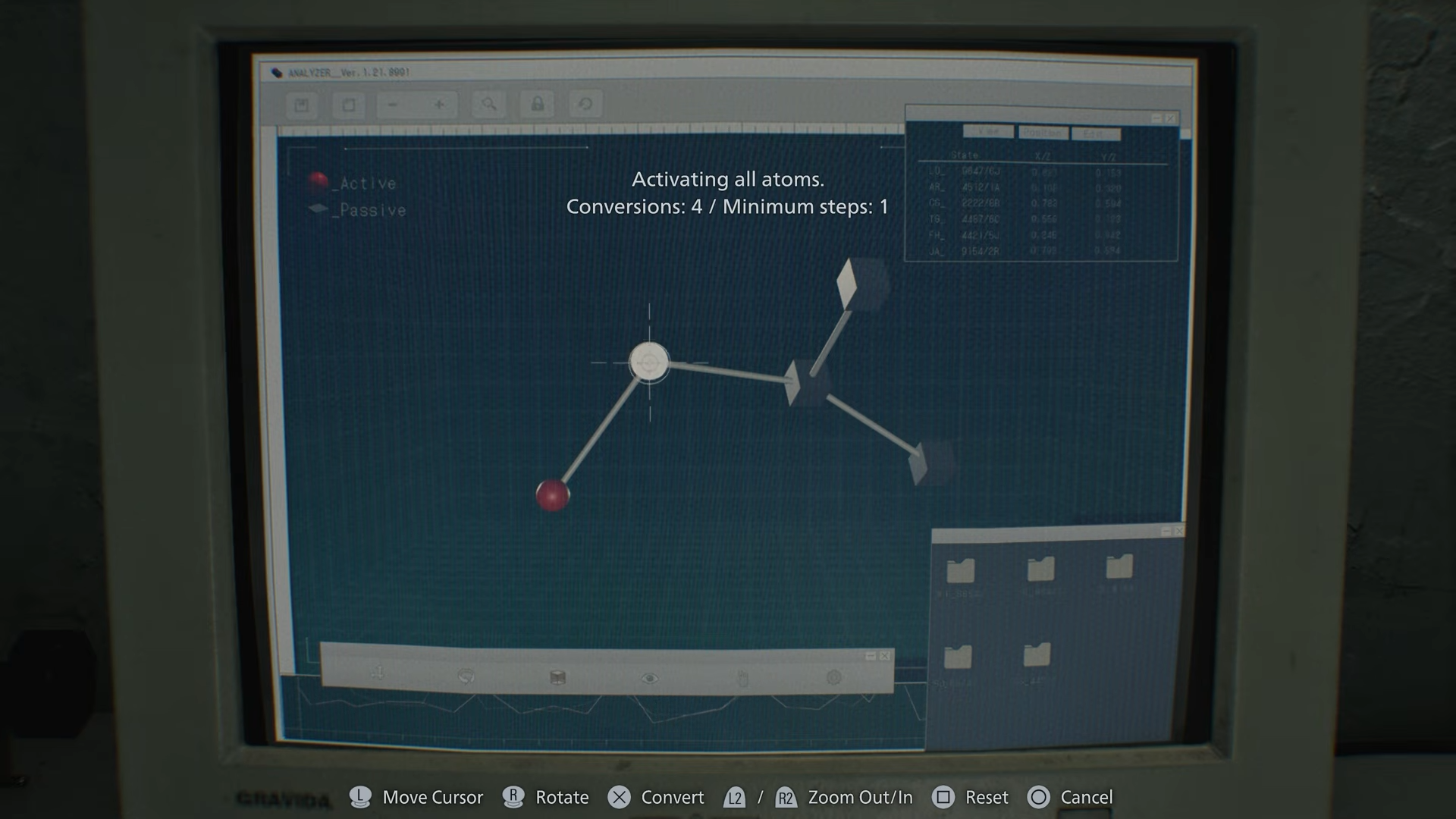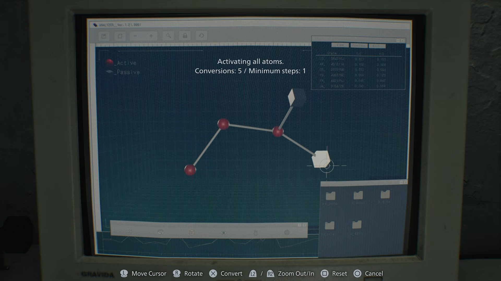 In Resident Evil Requiem, the Blood Analyzer puzzle appears after interacting with the blood sample screen displaying atoms. You must activate every atom by selecting them in the correct sequence, building and adjusting the structure step by step. This unlocks key crafting capabilities tied to the game’s progression.