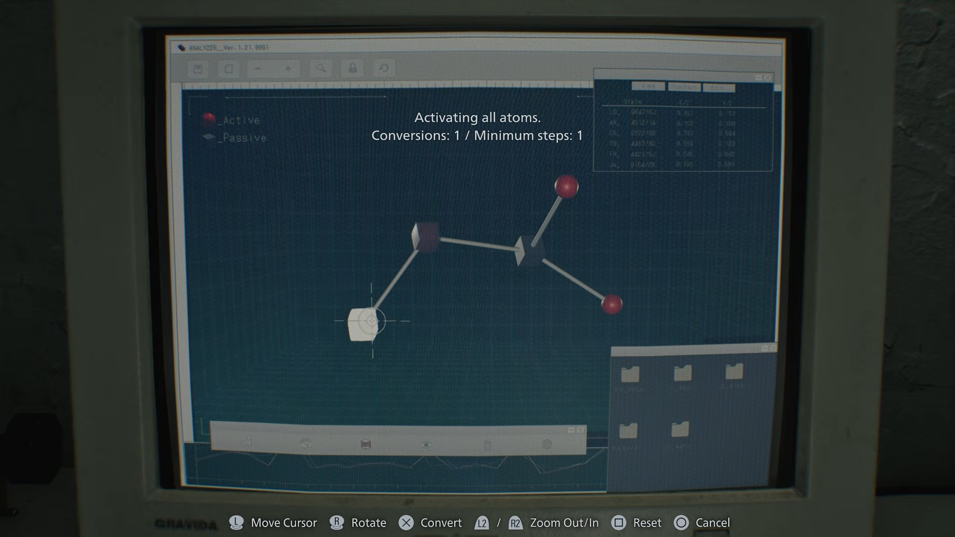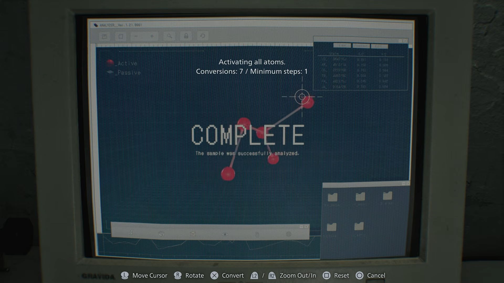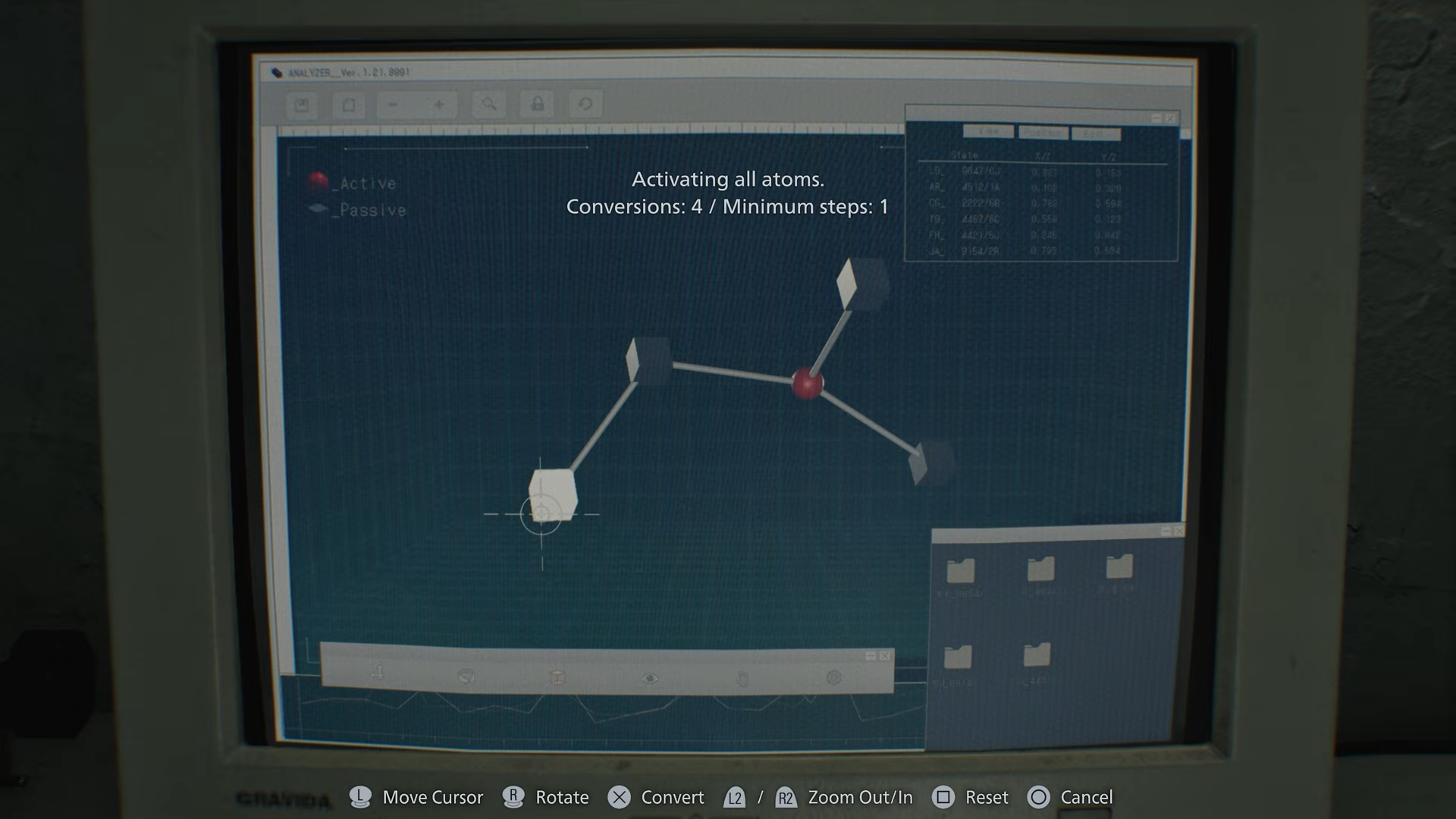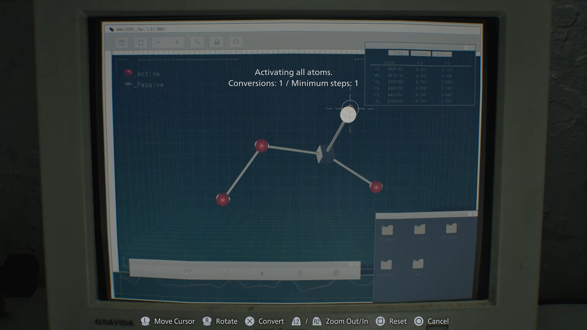 In Resident Evil Requiem, the Blood Analyzer puzzle appears after interacting with the blood sample screen displaying atoms. You must activate every atom by selecting them in the correct sequence, building and adjusting the structure step by step. This unlocks key crafting capabilities tied to the game’s progression.