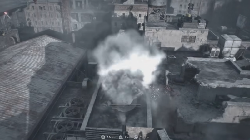 After gaining control of the mortar, you can also use it to destroy a hidden wall on the rooftop.