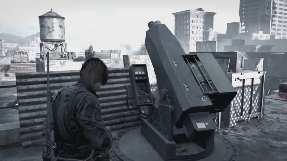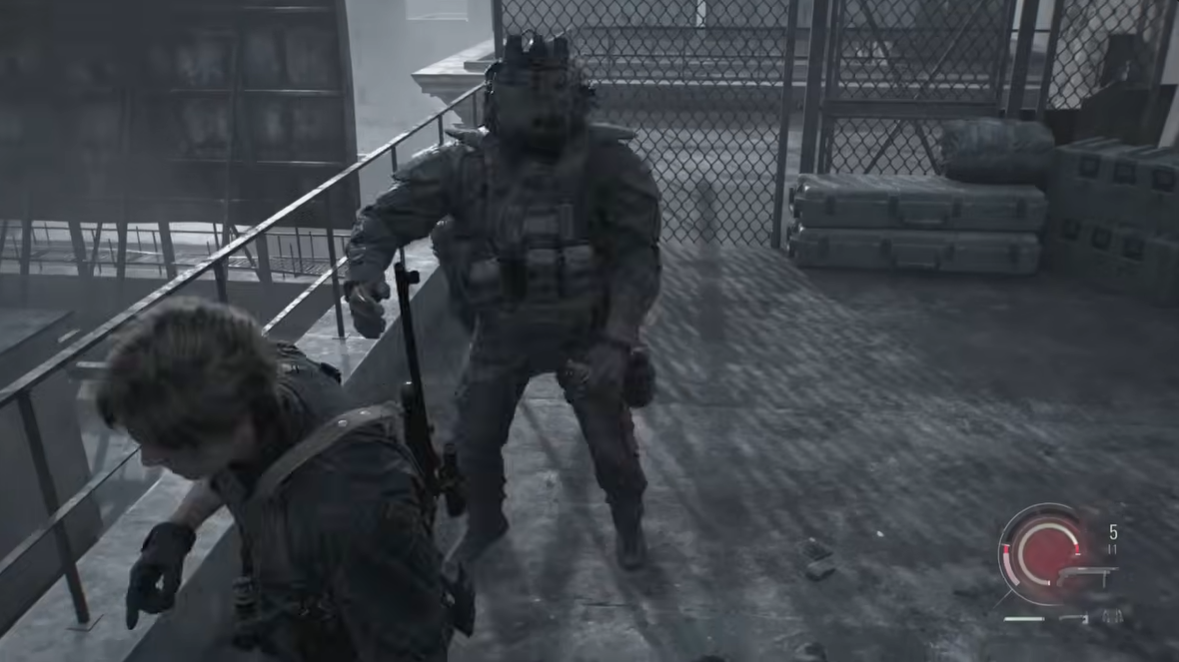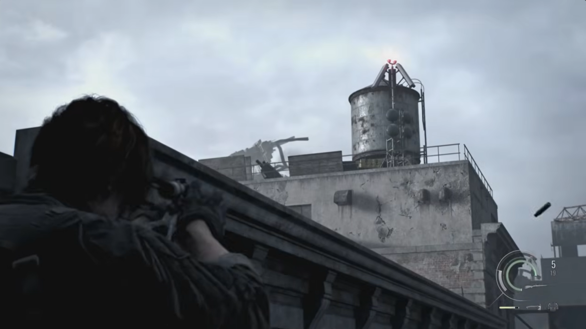 This enemy appears on a nearby roof and begins firing explosive shells once you move forward. Using a sniper rifle or precise handgun shots, you can eliminate the operator with a well-placed headshot.