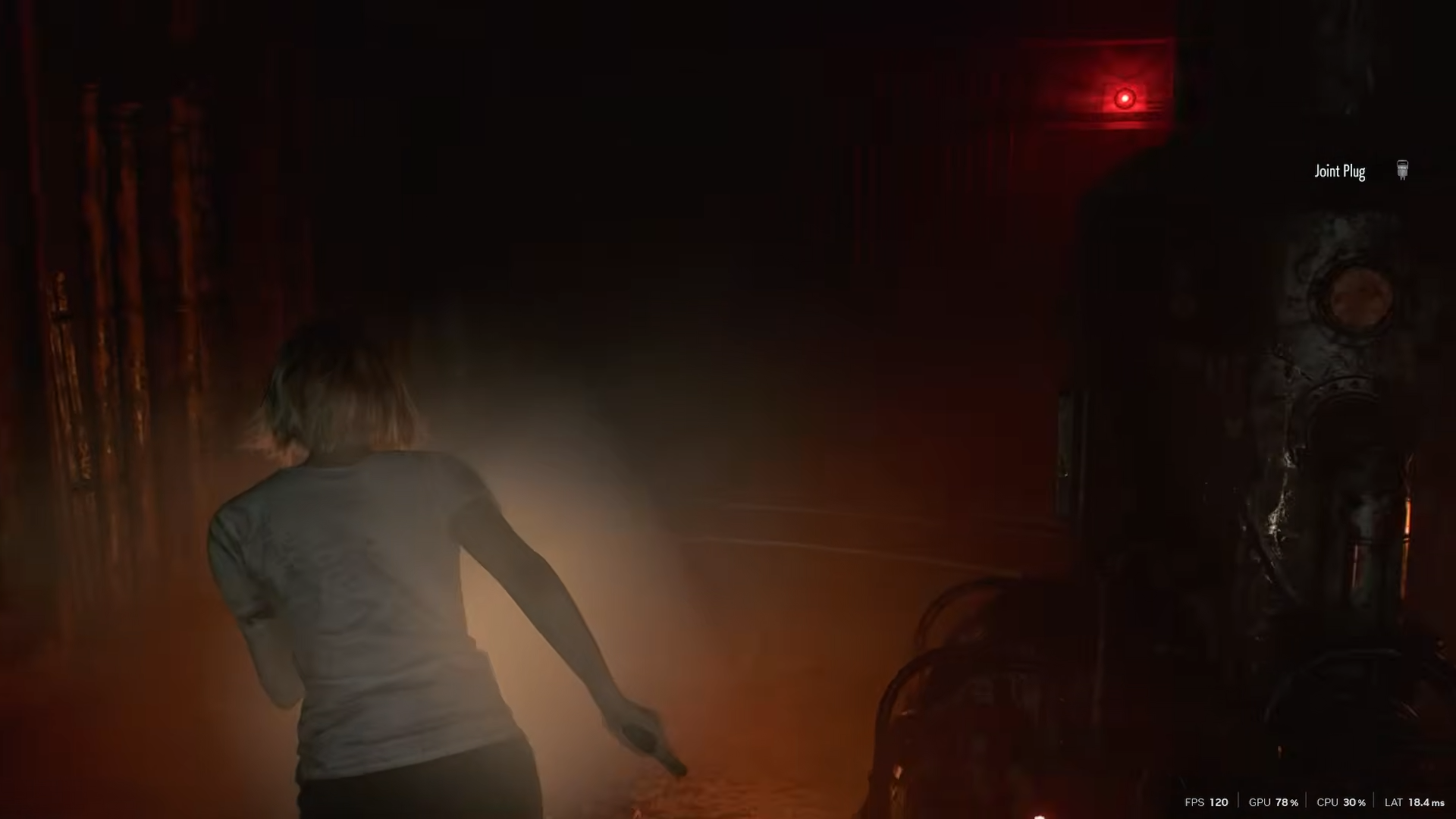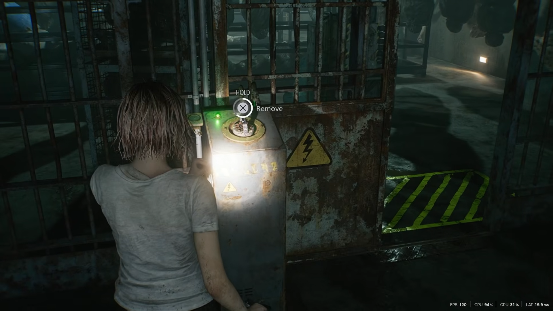 Hold the interact button to pull out the first Joint Plug from its socket. Lights turn off immediately, summoning The Girl—hide in a nearby open cell until she passes.