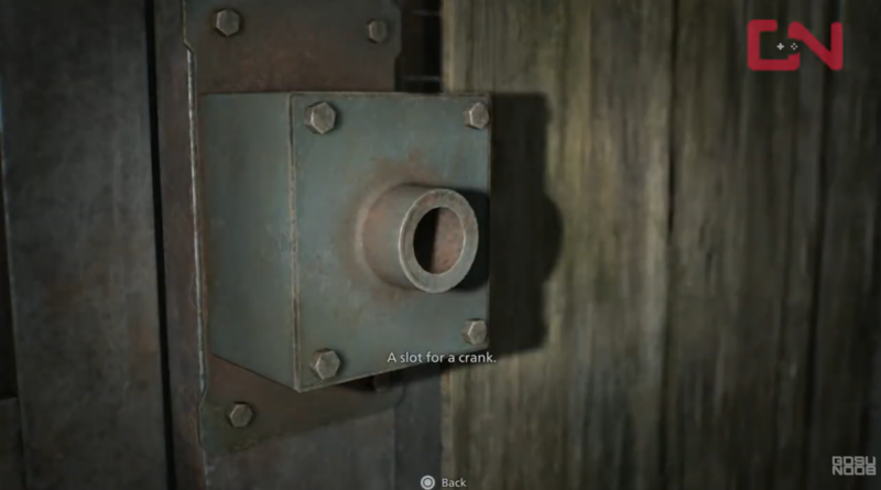 This is not a standard loot pickup lying on a table or hidden inside a drawer. Instead, the crank is part of the environment. When you approach the mechanism, you must interact with the lever-type handle. Once you move it, the connected door opens.