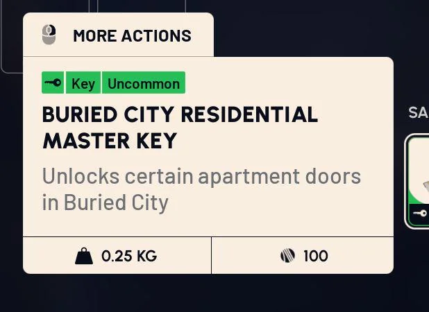 - The key unlocks a secret door in the Grandioso Apartment on the Buried City map, giving access to a loot room.