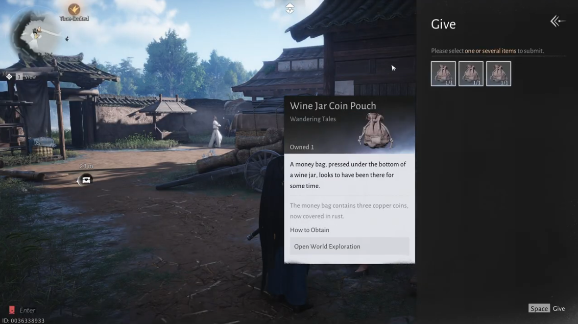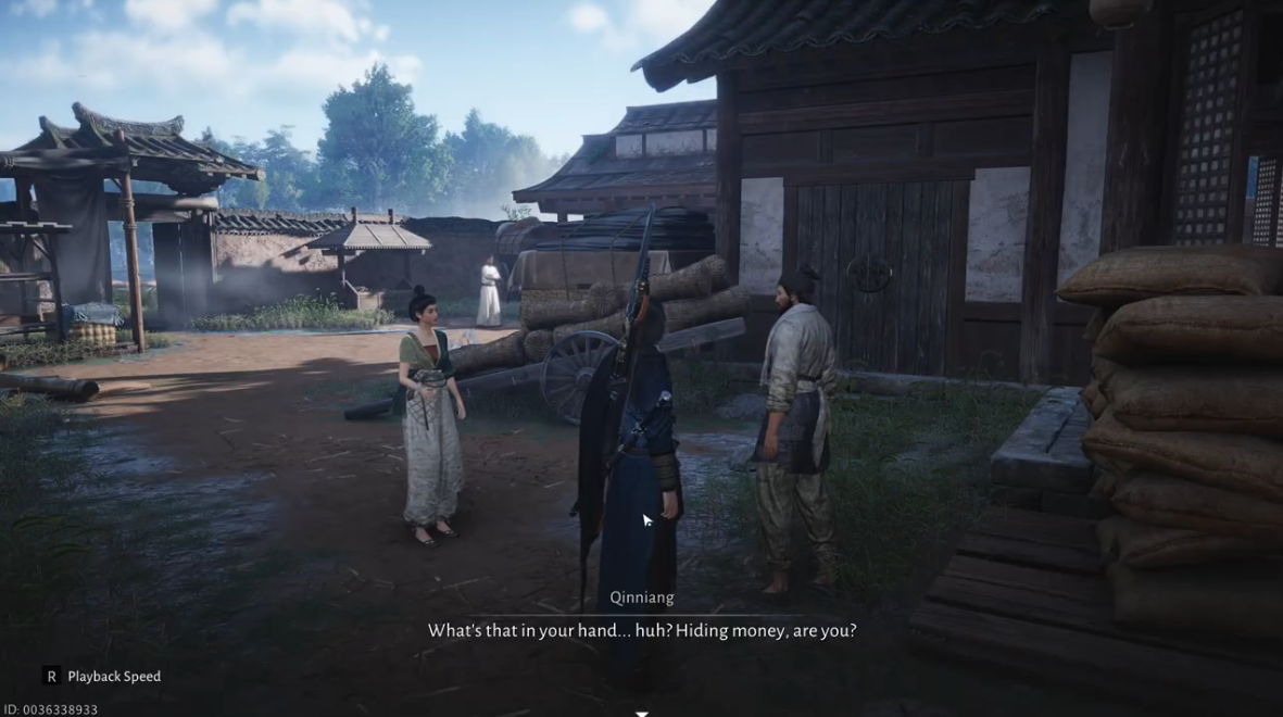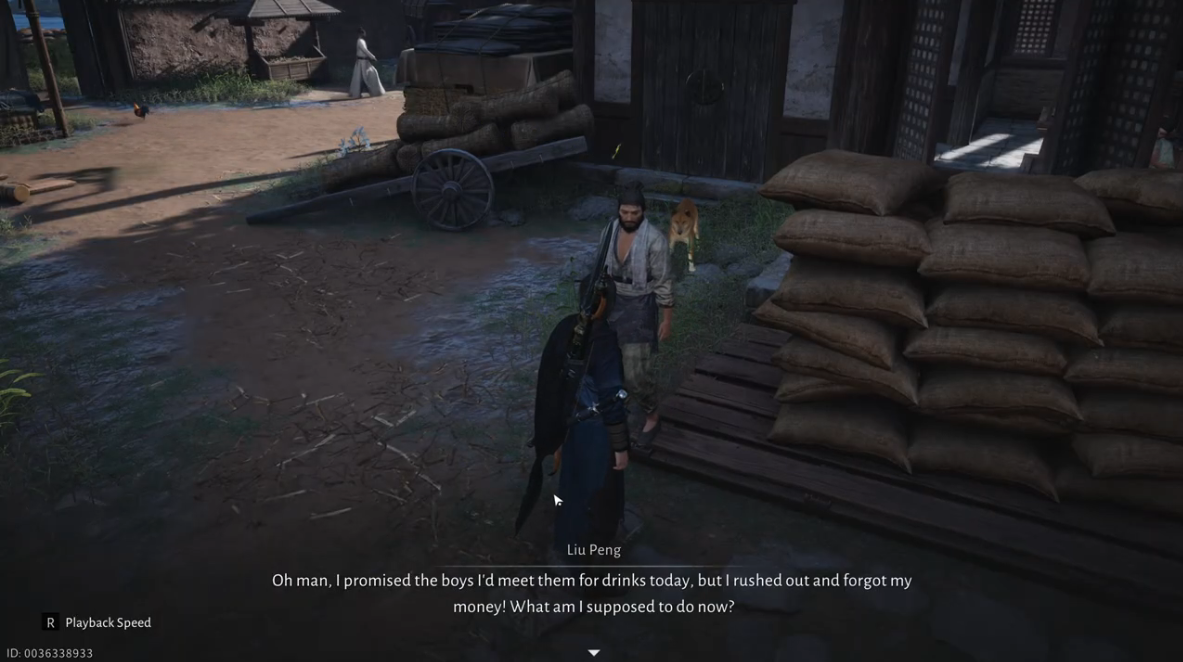 Go to Dragonway Station Inn, where you will find Liu Peng, who explains that he was on his way to drink with his friends but forgot the money he hid at home in Masterwood Hamlet. He asks you to retrieve it and warns you to avoid his wife.