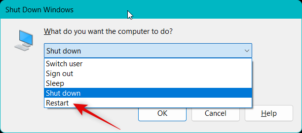 - Press Alt+F until all open apps are closed, then press it again, and use the arrow key to scroll to ‘Restart’ and hit Enter.