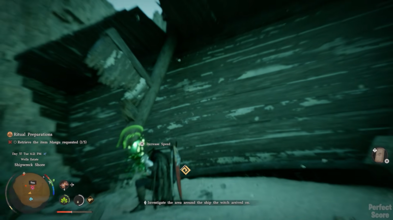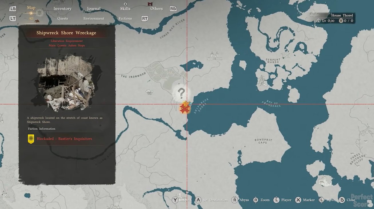 You’ll spend most of this quest navigating the Shipwreck Shore Wreckage, a debris-filled coastal area with scattered wreckage, driftwood, and environmental clues. The zone lies near Wells Estate, south of Demeniss, making it accessible relatively early in your progression.