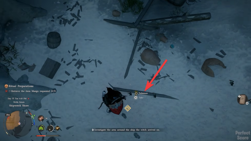 If you follow environmental clues like logs, wreckage, and crows, you’ll complete the quest quickly without unnecessary backtracking. Once all three items are collected, you’re ready to progress further into Maegu’s ritual storyline.
