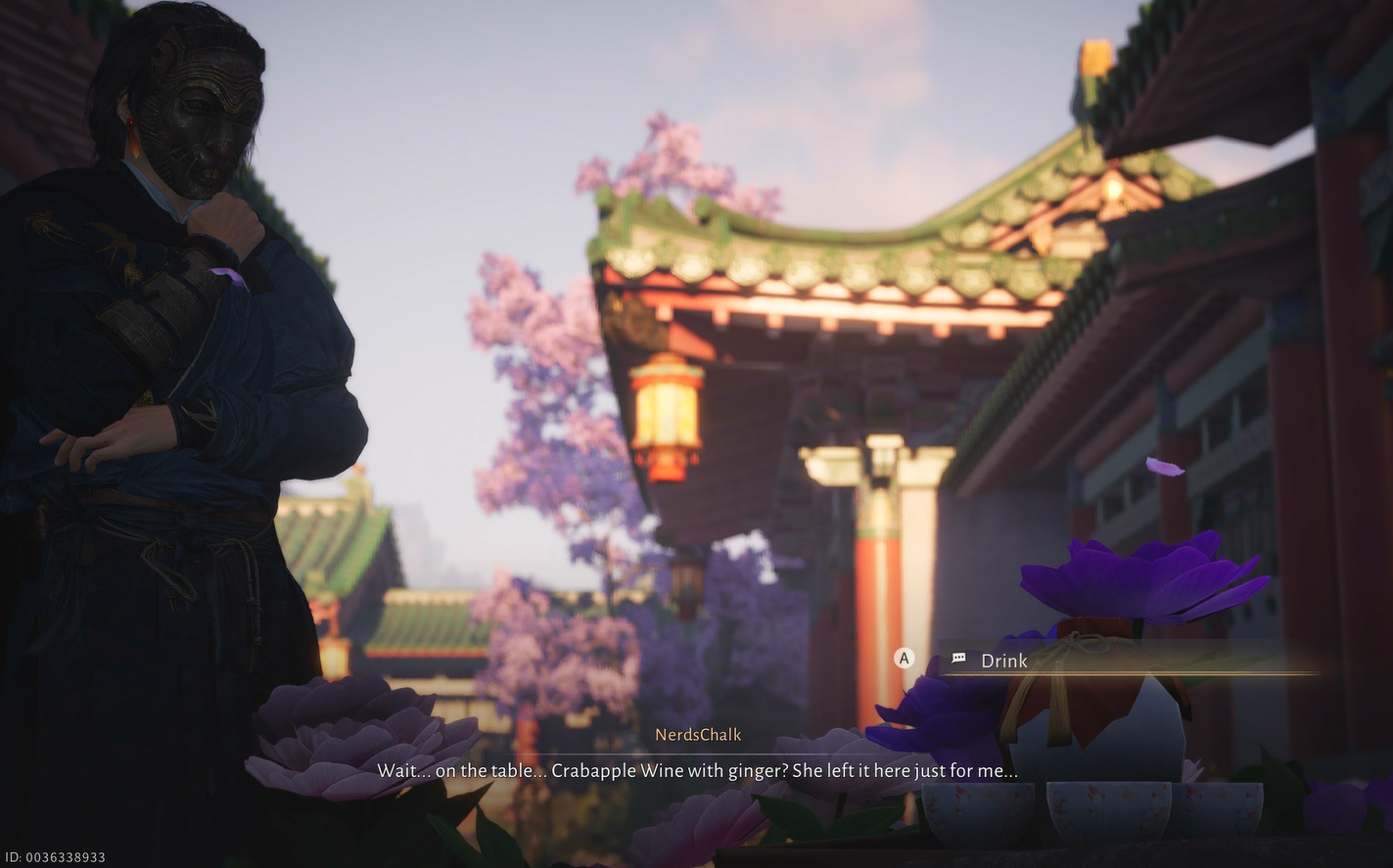 Reverie of Blossoms is a fragrance love letter steeped in gentle intoxication and fleeting beauty, much like Hua Jieyu herself, Velvet Shade’s famed Crabapple Flower. Her tale unfolds beneath moonlit branches and cups of crabapple wine, where reality drifts easily into dream. You will obtain this love letter at the end of her Reverie of Blossoms Wandering Tale, after following her ephemeral presence through the quest.