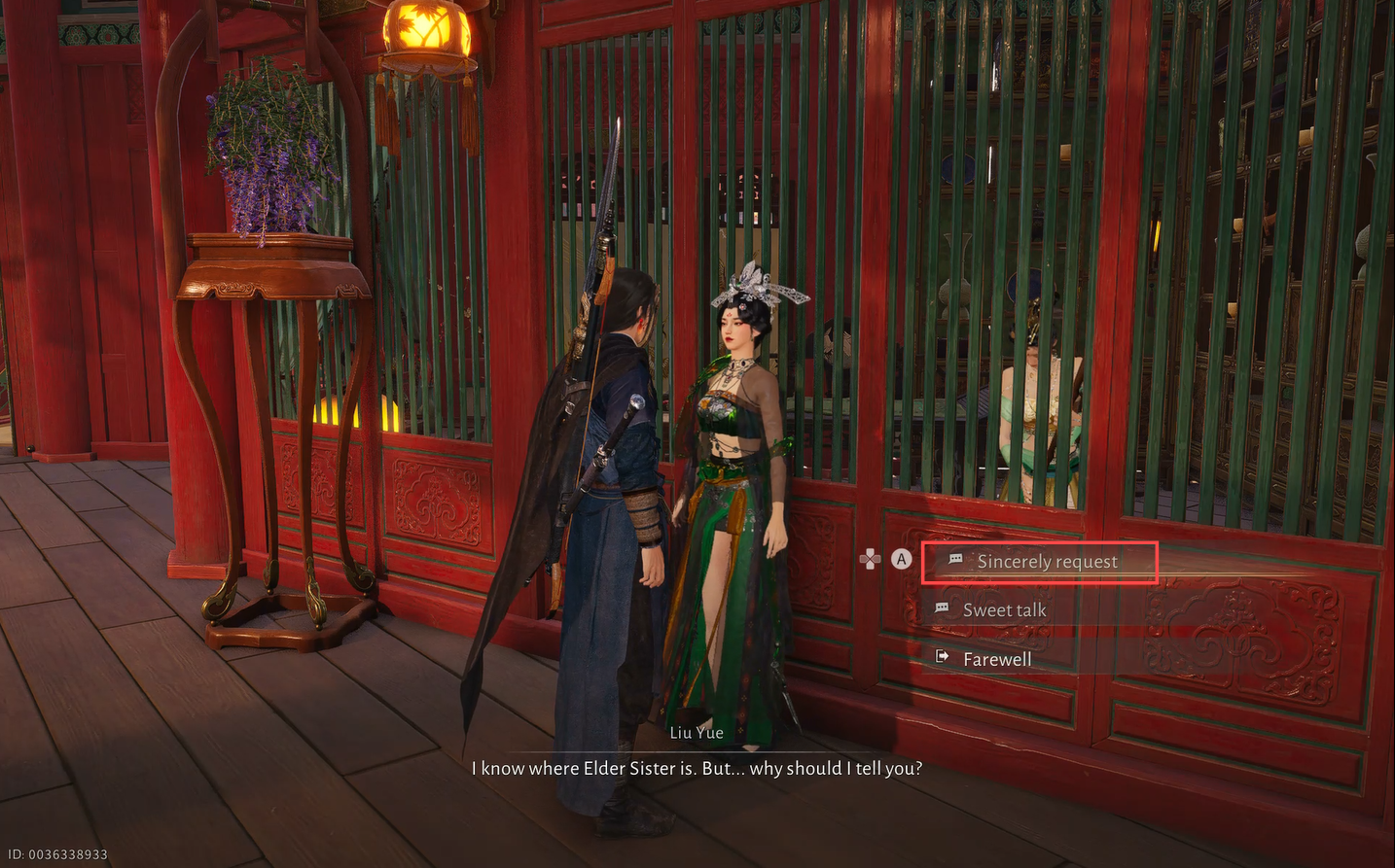 Talk to Muci and ask where Jieyu went. Impressed by your sincerity, Muci recommends bringing crabapple wine and searching for Jieyu under the Jade Tree in Bustling Abode.