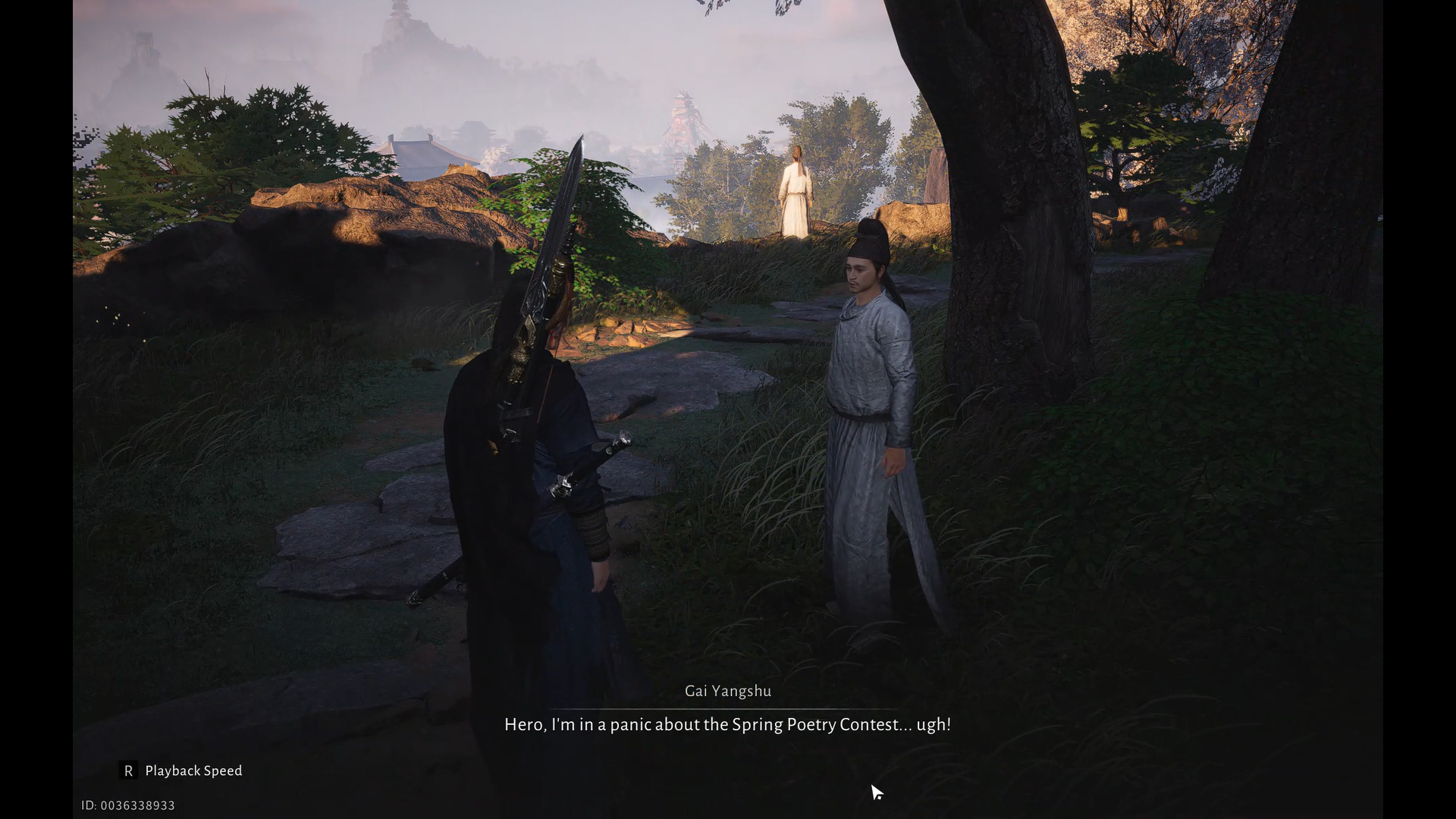 Start at Kaifeng's South Imperial Garden near the Baijon Tower in Jadewood Court. You will find poet Wen Jinyu sitting inside a pavilion and another poet Gai Yangshu under the Cherry Blossom tree. Interact with them to begin the tale.