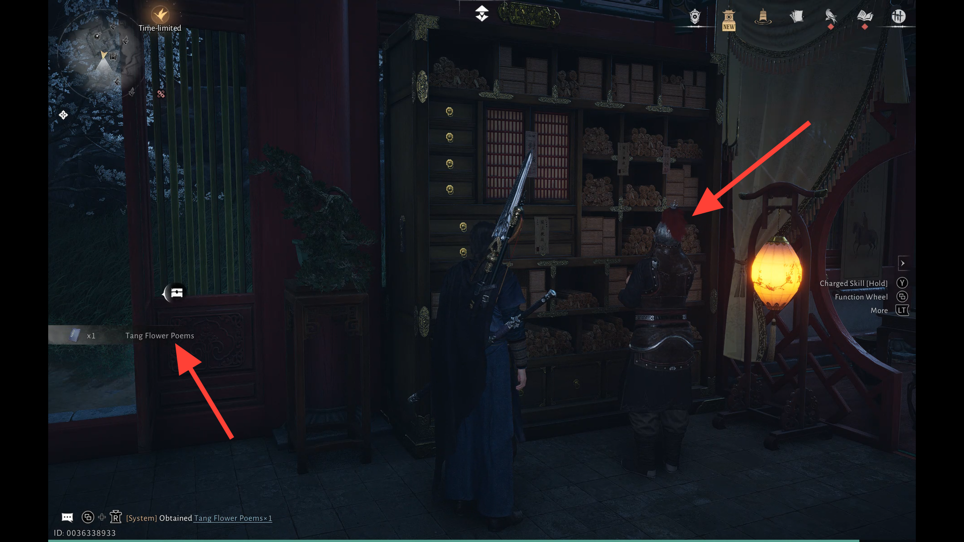 For Wen Jinyu, get the 'writings on flower viewings' from the South Imperial Gate interiors.
