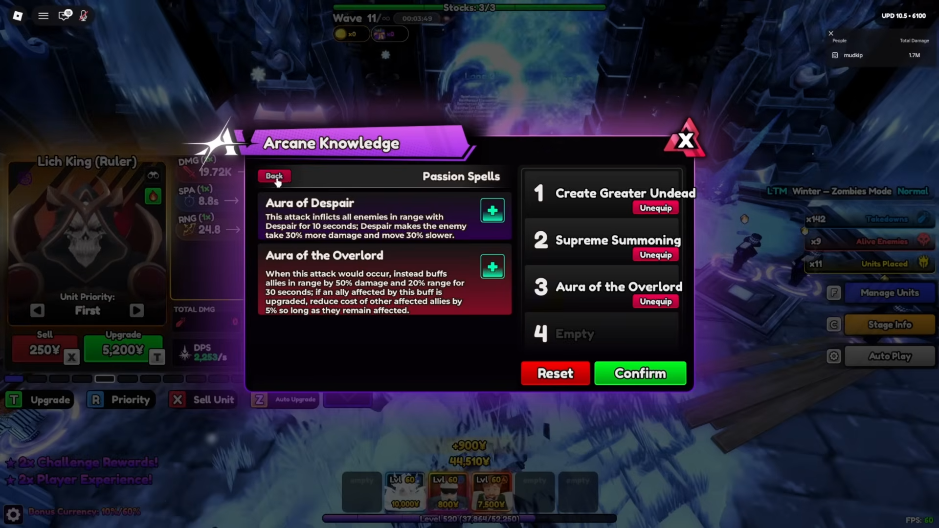 When choosing your run modifiers, prioritize this set: Passion, Aura of the Overlord, Rage, and Water with Acid Rain, then confirm.