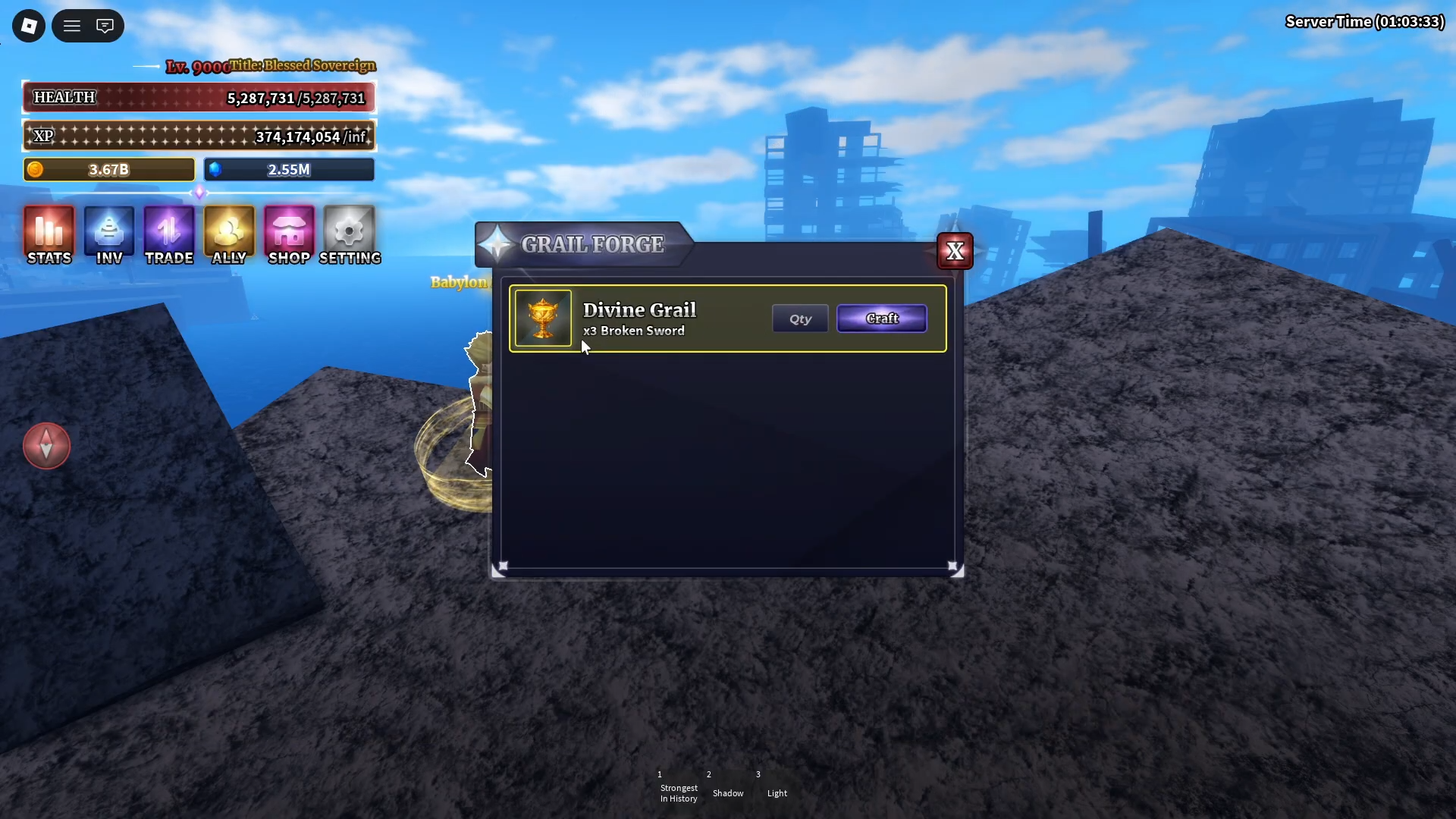 Once you have a decent stack of Broken Swords, you are ready to mass–craft Divine Grails at the Craft NPC.