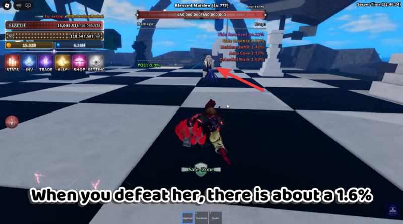 When you arrive on Boss Island, you need to locate the NPC responsible for spawning bosses. Interacting with this NPC opens a menu where you can select which boss you want to fight. From that menu, you must choose the Blessed Maiden Boss option.