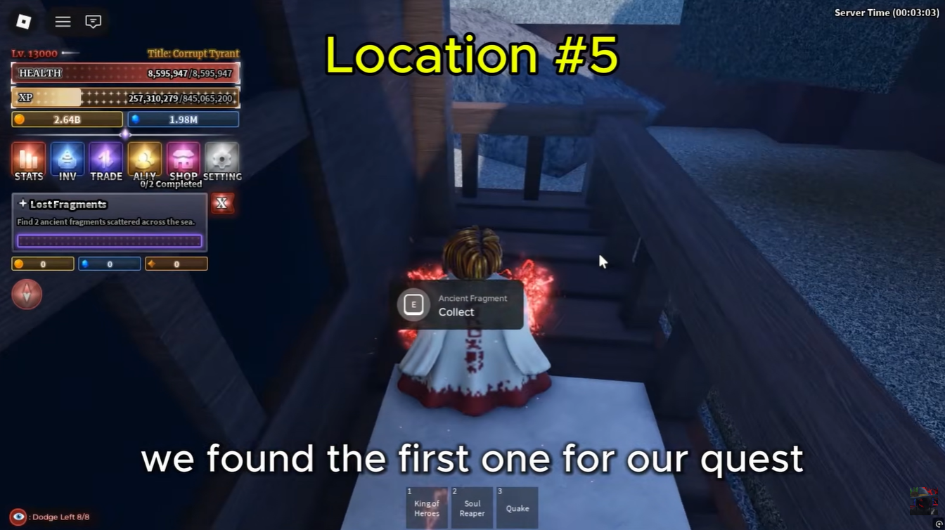 Fragments follow a predictable system where they spawn every 90 seconds, or 1 min 30 sec, and disappear after 5 minutes, which means you have a short window to collect them. Because of this, efficient routing between islands is more important than combat strength. Here are the locations of all known Ancient Fragment spawn locations in Sailor Piece: