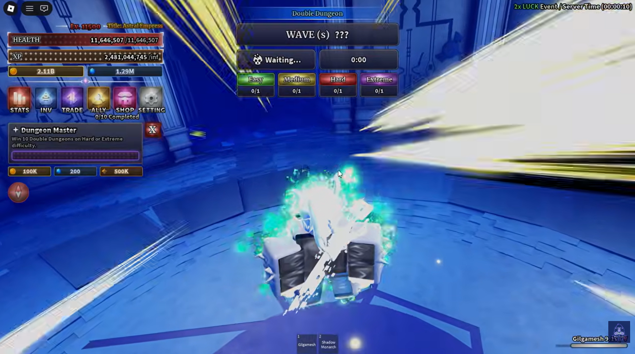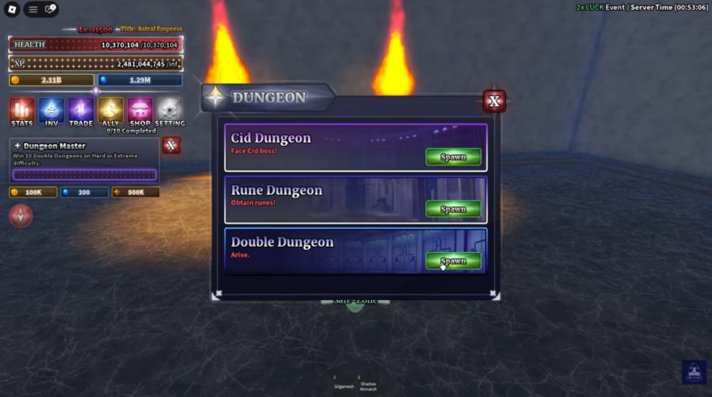 All major progress toward unlocking the Shadow Monarch F Move takes place inside Double Dungeons, which act as the central activity for this quest. These dungeons are where you will complete runs, encounter Shadow Soldiers, and build overall progression.