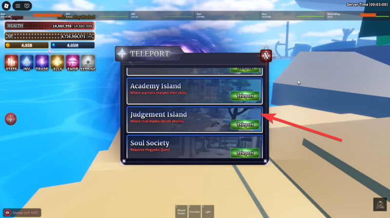Judgment Island is a late-game zone designed specifically for the Spec Passive system. The island contains high-level Swordsman NPC enemies around level 10,000, which means it is not intended for early or mid-game players.