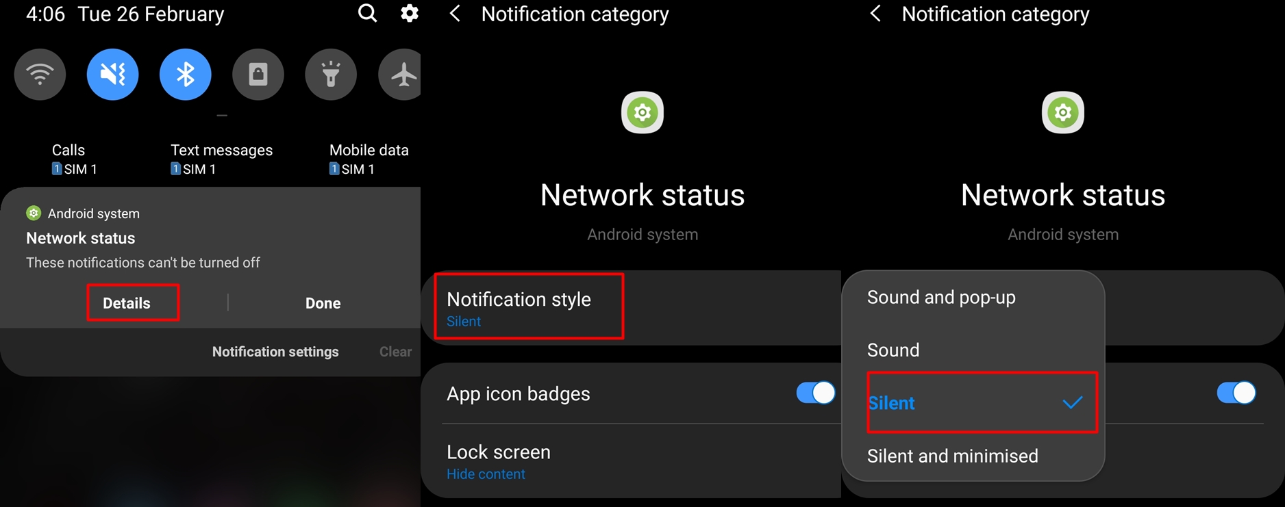 Some users aren’t able to see the Hotspot icon on the status bar on their Galaxy S9. This might be the result of the Network status notification being on silent and minimized in the Notifications setting.