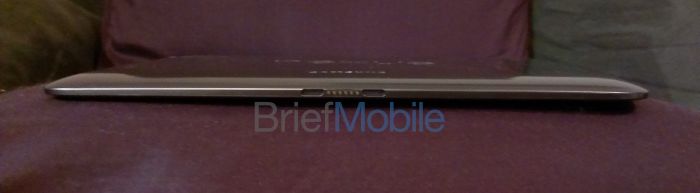The general shape is very Galaxy Note 10.1-ish, for lack of a better word, although the edges are a bit more rounded. Check out the Nexus etching on the back, with the Samsung logo below. Somehow, the back panel looks similar to the Motorola Xoom WiFi, with the exception of that beautiful five letter word.
