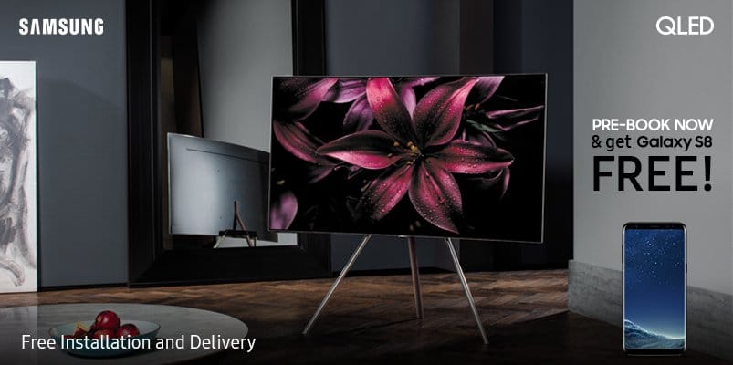 On-preordering the 65-inch Curved QLED TV (65Q8C) which is currently priced at PKR 500,000, you’ll get the Galaxy S8 (priced at PKR 80,000) for free. That is, in a way nearly 16% off on the original price, if you will.