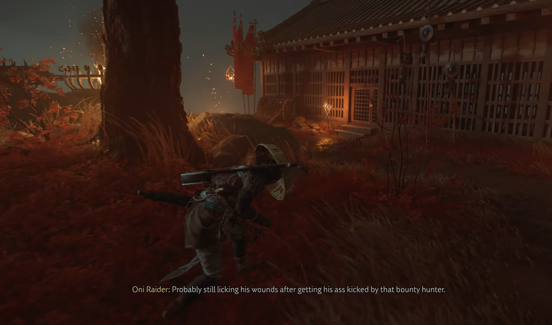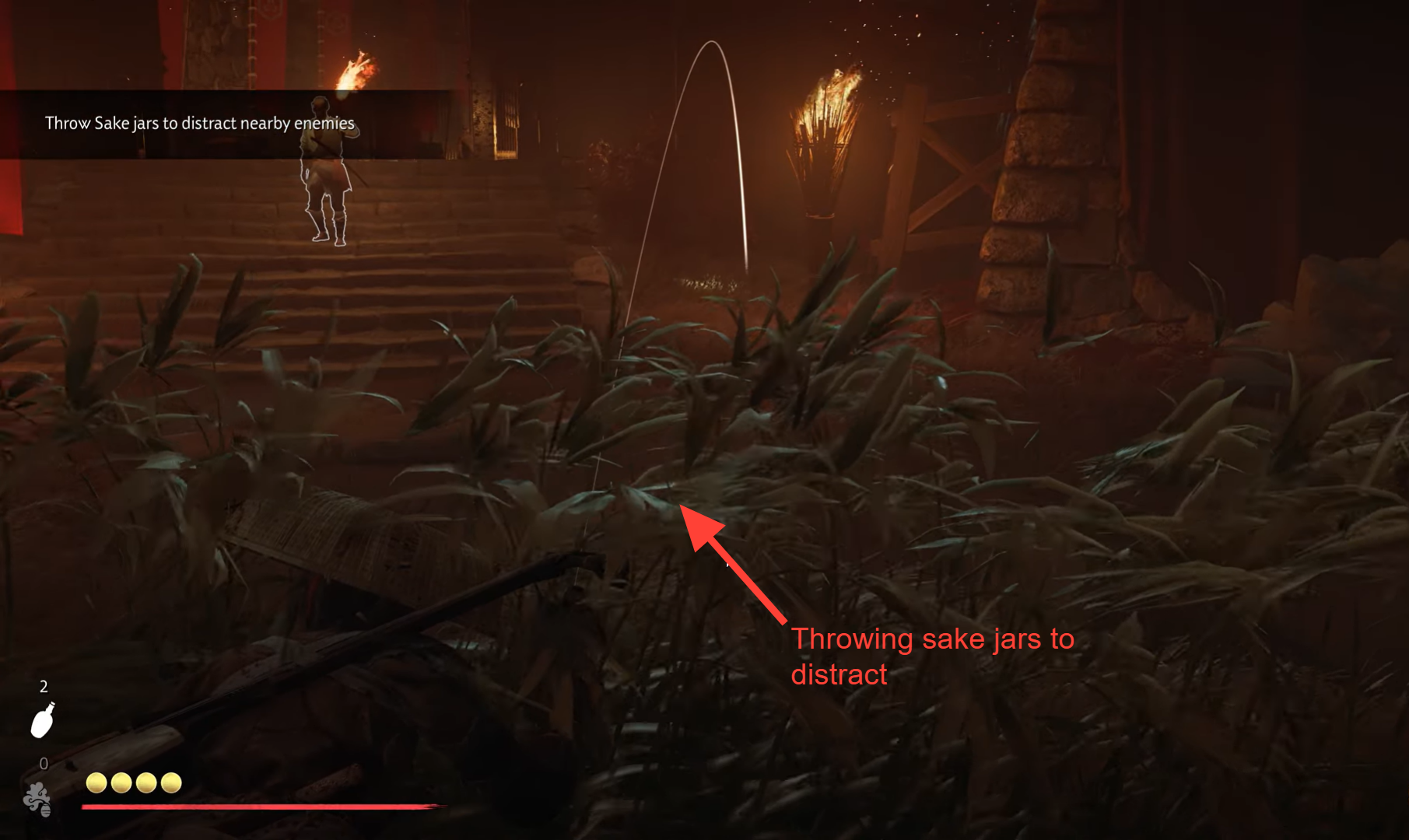 Sake bottles and environmental objects are especially helpful in Oni’s mission.