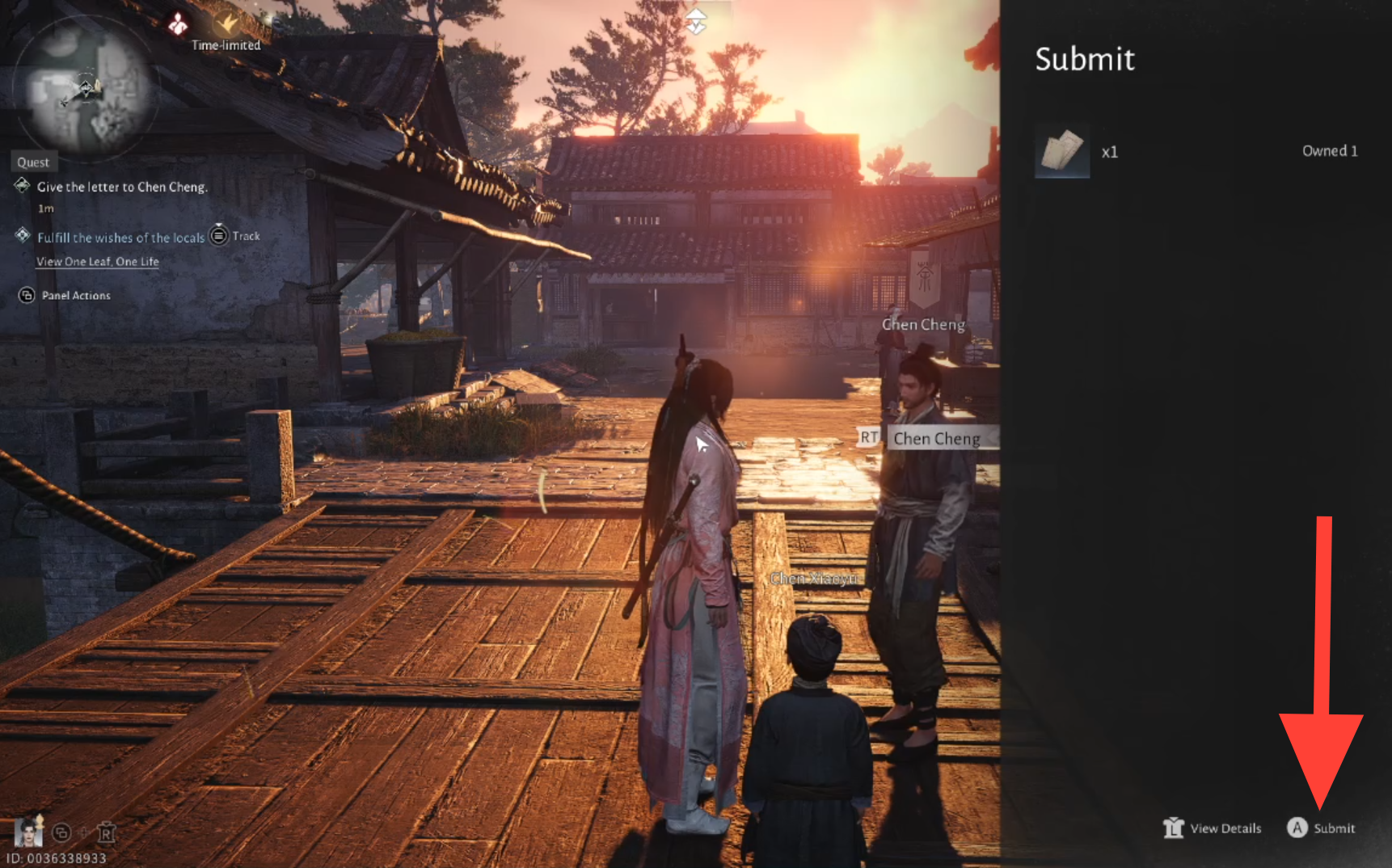 After speaking with Chen Cheng and Xiaoyu, give the letter to Chen Cheng to complete the quest and receive your rewards.