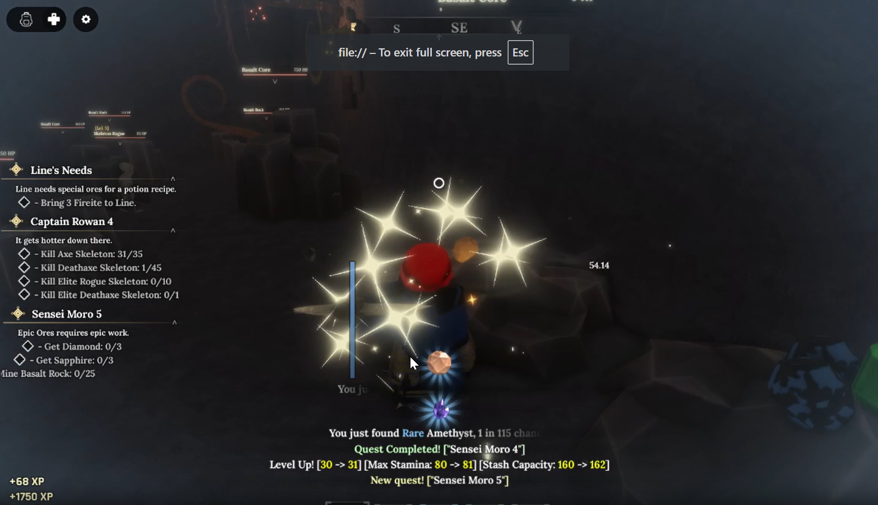 You will start in Descent's Beginning. Clear the first objective by mining 35 basalt rocks.