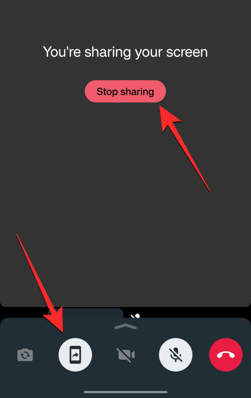 When you’re done sharing your screen, you can terminate the screen-sharing action either by tapping on the Stop sharing button on the screen or by tapping on the Phone icon from the bottom bar.