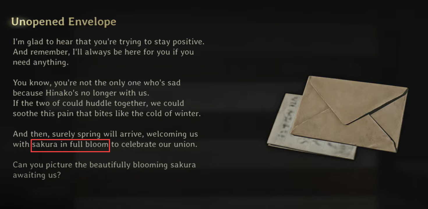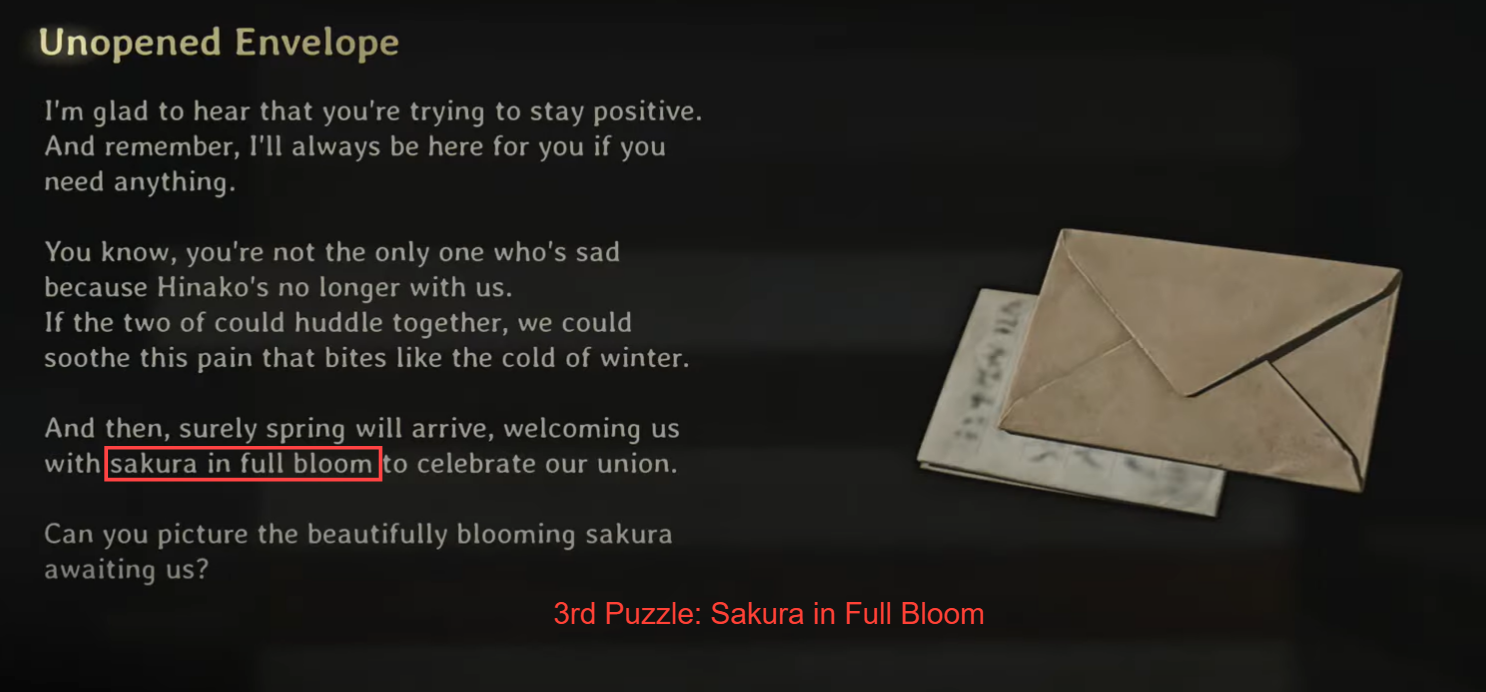 Take the puzzle box from the desk and read the note referencing “Sakura in Full Bloom.” This is your clue for the round.