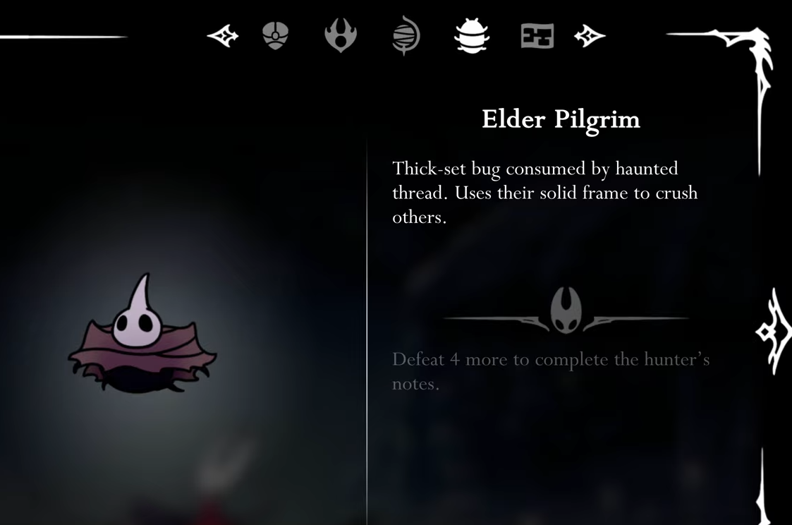 Each Elder Pilgrim defeated is recorded in the Hunter’s Journal, which is vital for players seeking full completion. These enemies are linked to late-game content, and defeating four of them unlocks their journal entry.