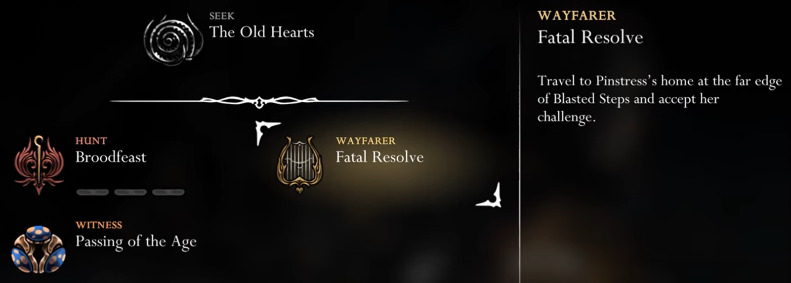 | Quest Completion | The Wish log updates, marking Fatal Resolve as complete. |