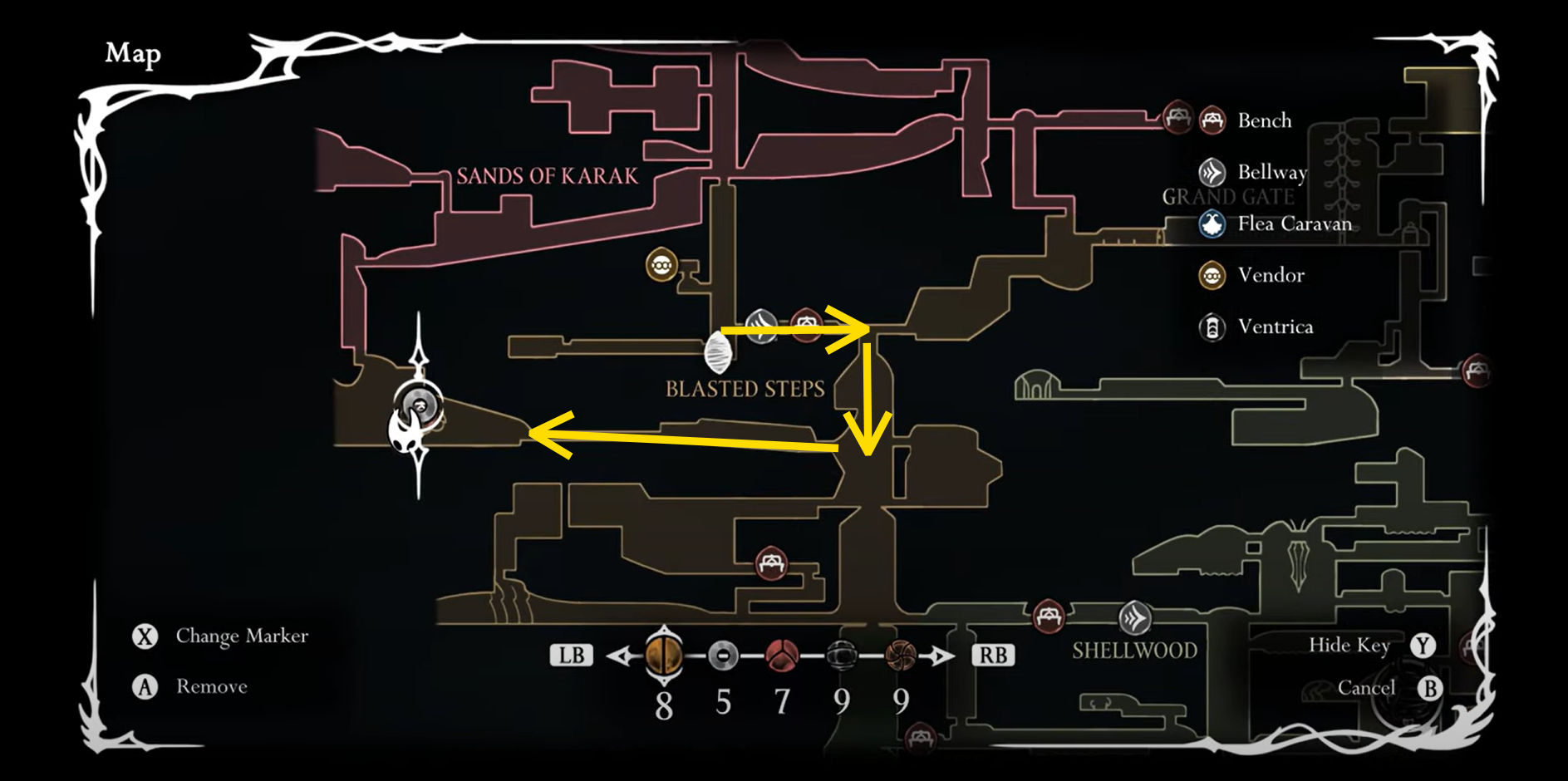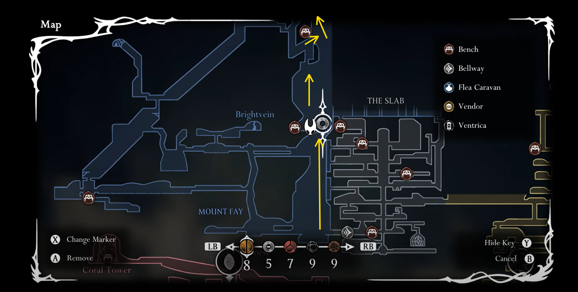 From there you will see the platform to your right, reaching this platform might be hard, but remember that you can use Clawline against the spike wall to give yourself a further boost.