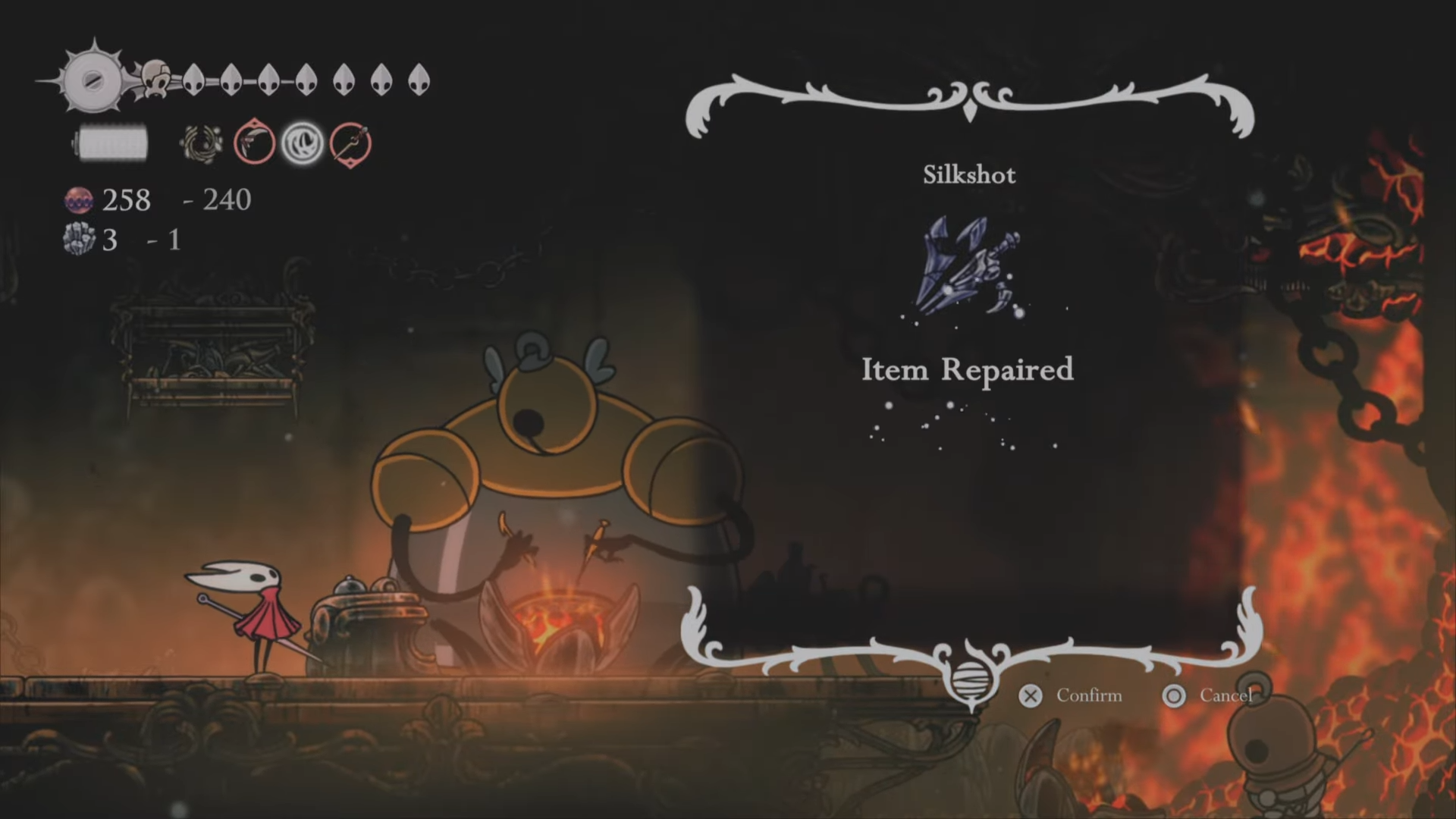 The highlight of this excursion is the Ruined Tool. Take it to the Forge Daughter NPC—she’ll offer to repair it for a fee of 240 beads. Once repaired, you’ll receive the Silkshot ability, allowing Hornet to shoot a web-like projectile. This is highly useful for both scraping through platforming challenges and in combat scenarios against agile foes.