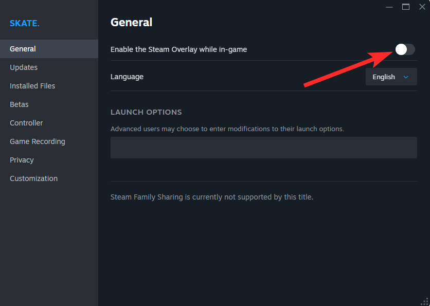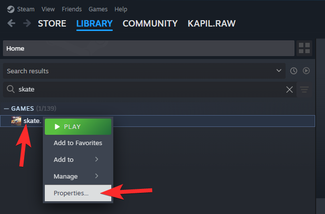 For Steam users, open the Steam app and go to Library. Right-click Skate in your Steam library and select Properties.