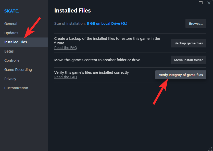 Navigate to the Installed Files tab and click Verify Integrity of Game Files.