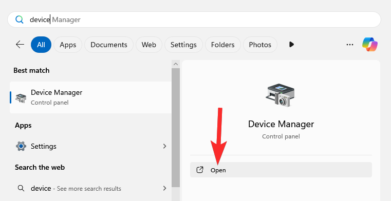 Open Device Manager by pressing Windows key and typing "Device Manager".
