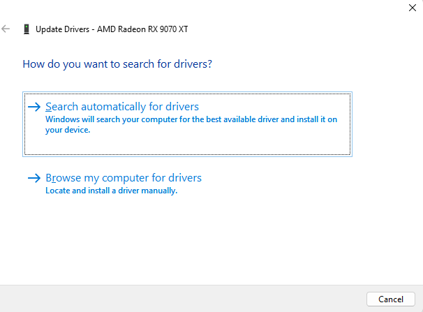 Choose Search automatically for drivers.