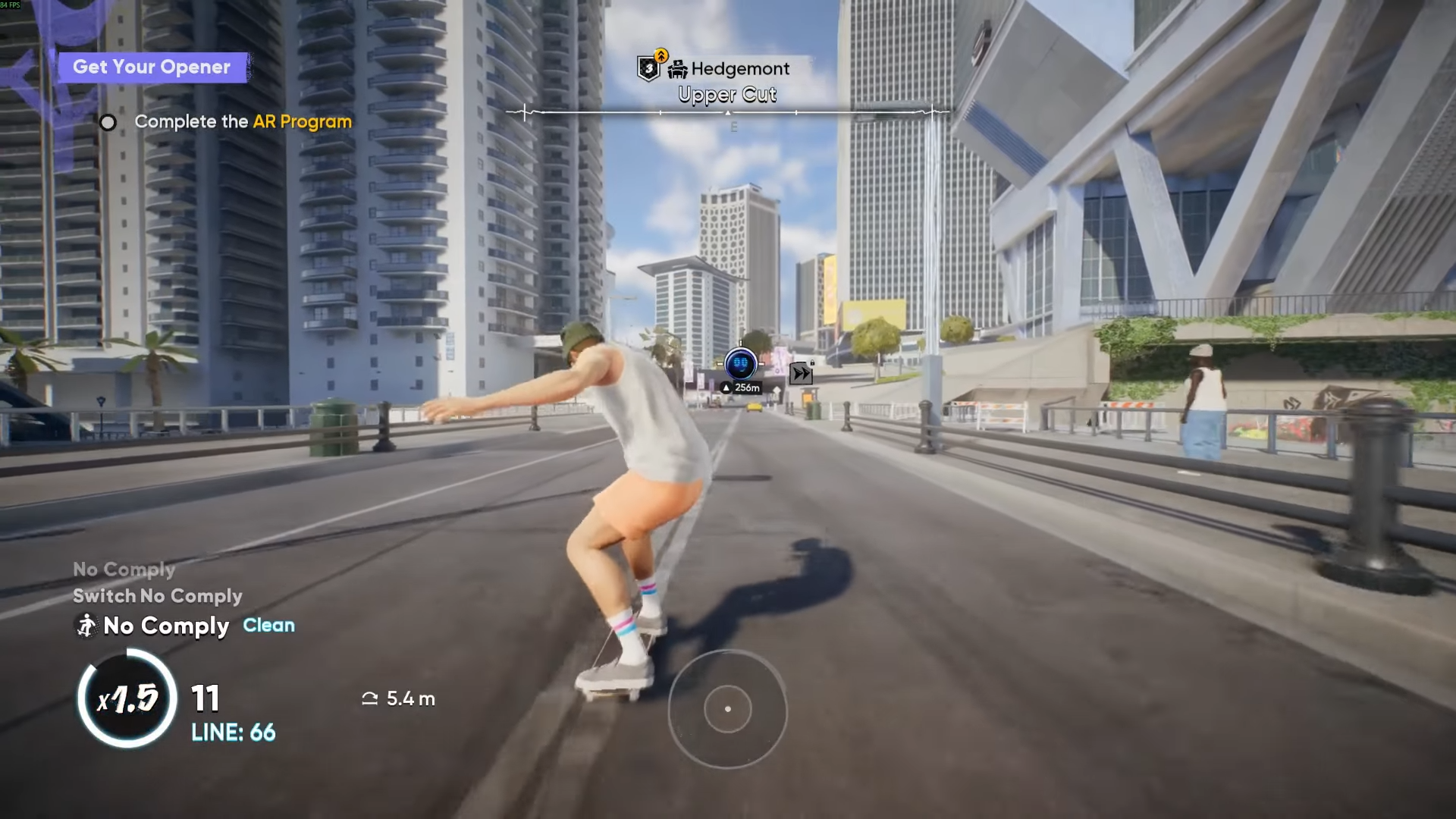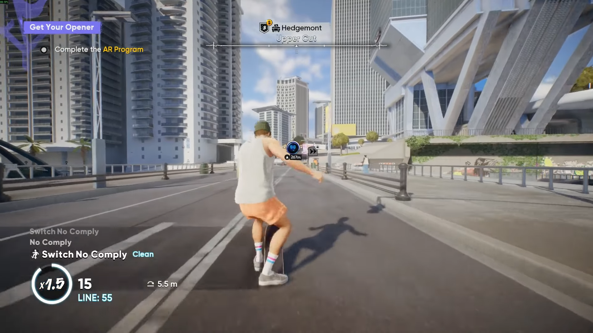 No Comply is a basic but versatile trick in Skate 4 involving pushing with the front foot off the board while the back foot scoops the board around. It acts as a stylish setup trick and helps create complex trick combinations.