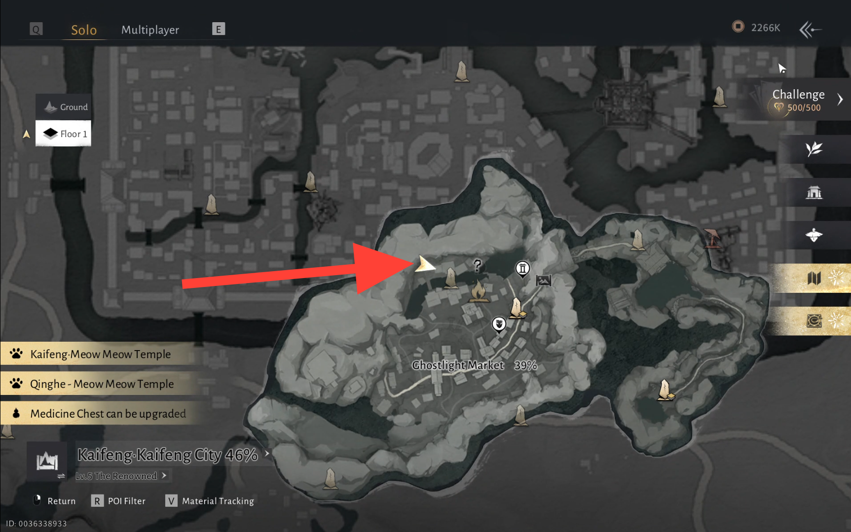 To start this Wandering Tale, head to the marked location below in Ghostlight Market and speak with Granny Gray inside her shop.