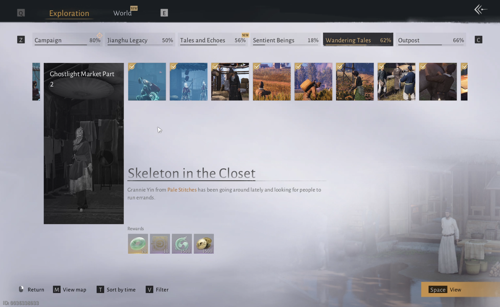 The "Skeleton in the Closet" is a Wandering Tale in Where Winds Meet that starts in Ghostlight Market. Start by visiting Granny Gray in her shop, then get a Rattan Paper and sketch Pu Niannian in the central compound. Use his portrait to disguise yourself at the Cosmetics shop, and approach Moqi Anshan to obtain the sword tassel. Return the sword tassel to Granny Gray to complete the tale.