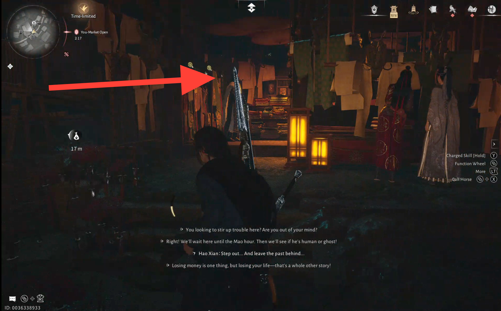 Head to the marked location near the East Cross Street Boundary Stone and speak with Wuyan inside the Disguise/Cosmetics shop. Choose Niannian’s portrait to put on the disguise.