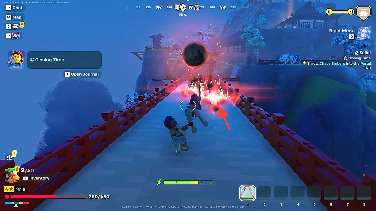 Throw the chaos embers in the portal to close it. This will unlock the Lloyd journal.